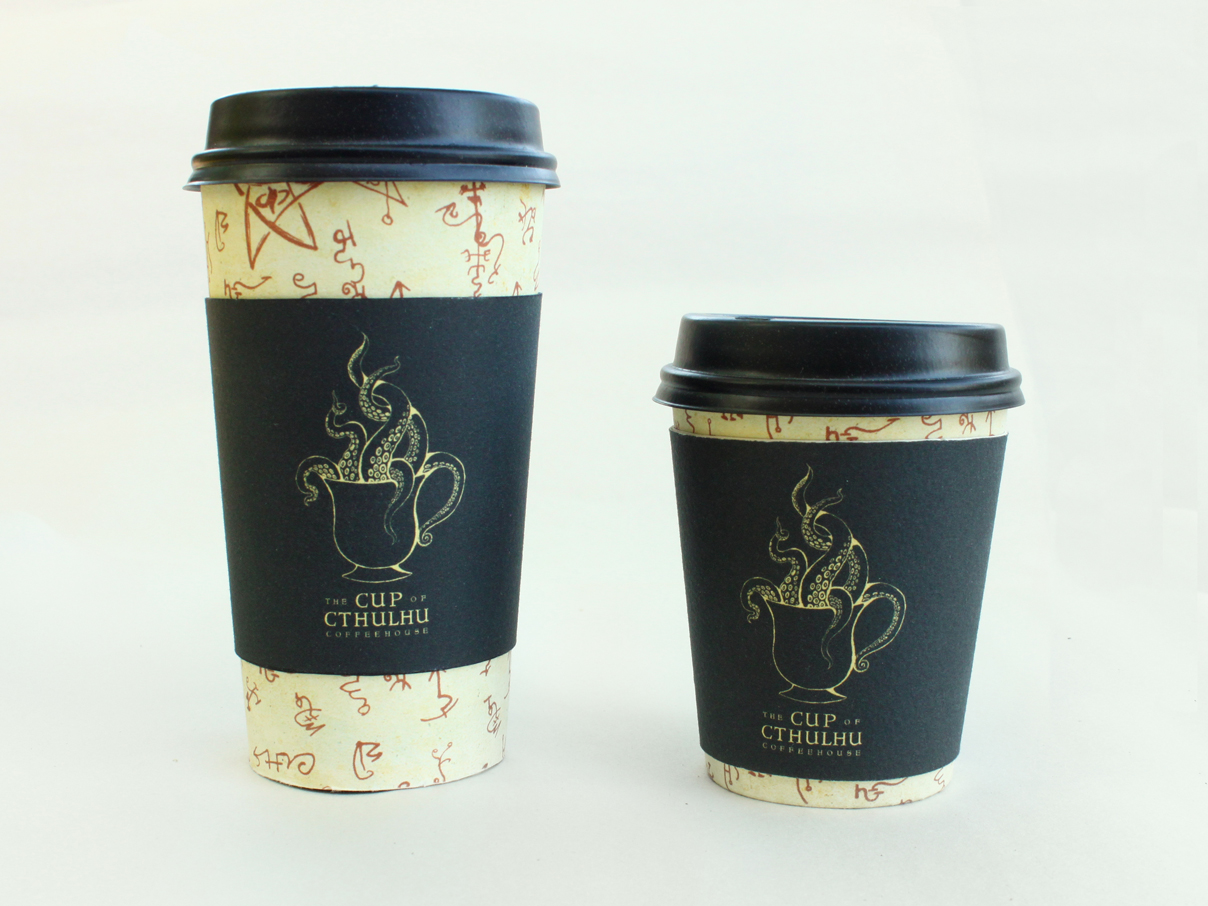The Cup of Cthulhu is a coffeehouse identity inspired by strange and horrific literary works of H.P. Lovecraft, especially The Call of Cthulhu series. The coffeehouse is imagined to serve as a lounge for writers and artists, and to host live music and poetry reading events.