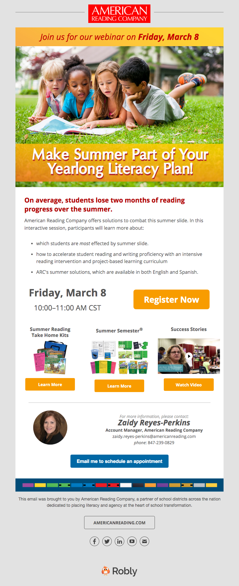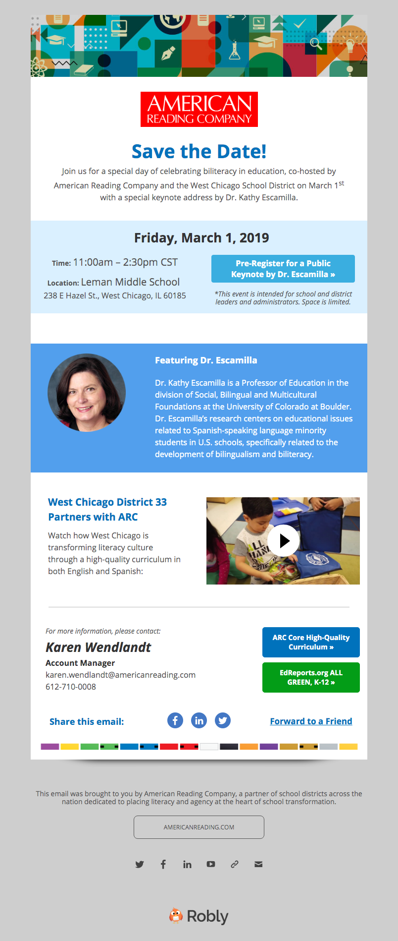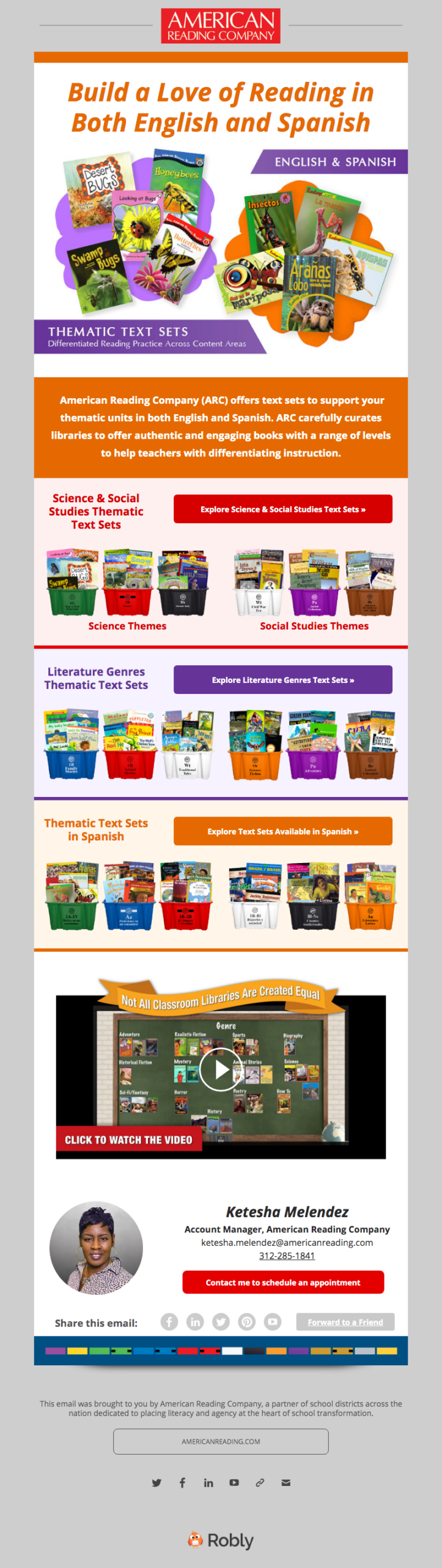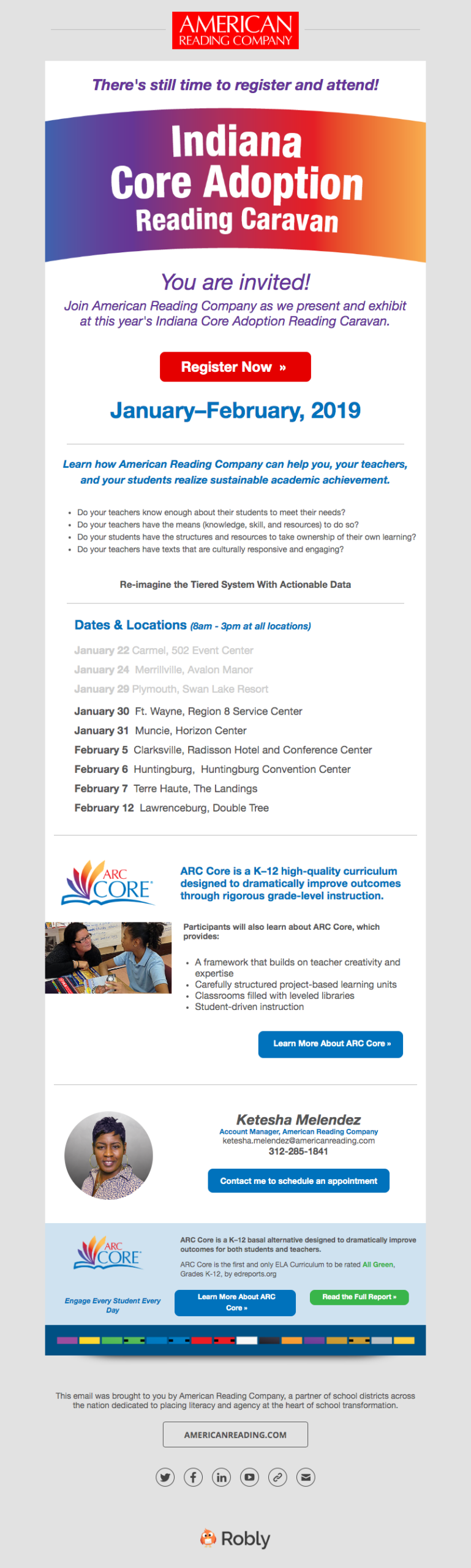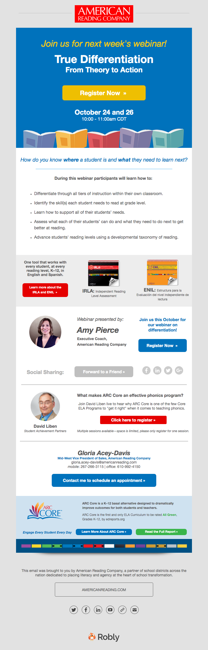 ARC's Midwest audience and even state-specific schools all have different needs. Many Midwest schools supported dual-language learning so both English and Spanish language arts were a key selling point. Our email campaigns would target specific school board members, principals, and teachers with information about curated classroom libraries that encouraged multiculturalism and ARC Core's robust project-based K-12 curriculum. Other campaigns were used for events, webinars, and other learning opportunities with phonics experts and coaches.