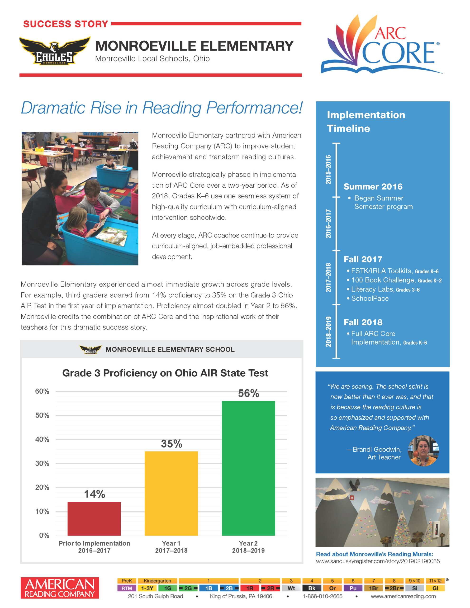 Built and run by education activists, American Reading Company (ARC) is a trusted partner of 5,320+ schools and 1,070+ districts in 50 states. ARC helps strengthen district and school capacity at every level by placing literacy and agency at the heart of school transformation with the mission, “To ensure every student is reading on or above grade level.“ As a result, all students read, write, think, investigate, and solve problems at increasing levels of proficiency.