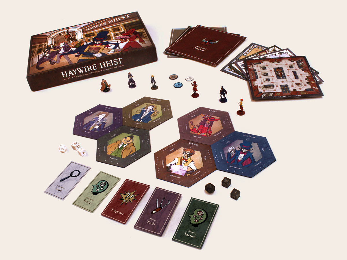 Haywire Heist is a strategy/cooperation board game with a Cops and Robbers theme. The game is inspired by both classical and modern mystery genre fictions and characters.
